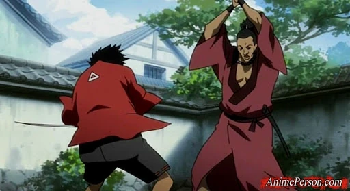 Ishimatsu appears in the third episode Hellhounds for Hire (Part 1) when he meets Mugen for the first time. Both of them spar, with both of them acknowledging their skills and strength, although Mugen was still very brash and cocky. Rikiei calls off the fight, and Ishimatsu doesn't appear much after this.