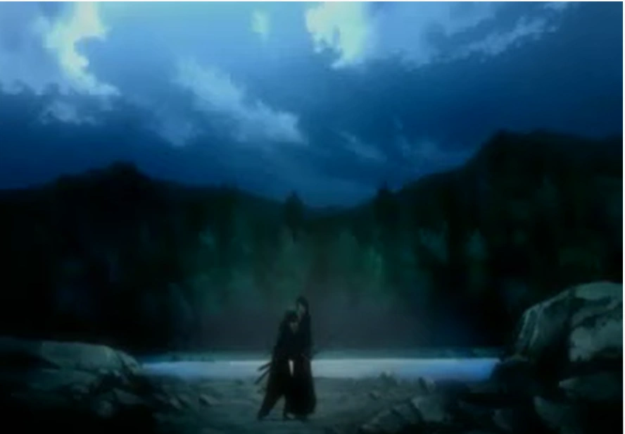 With his dying words, he confesses that all he really wanted was to be exactly like Jin. He and Fuu lay Yukimaru’s body to rest when they’re suddenly interrupted by distant noises. As it turns out, the Matsumae have tracked down Mugen and Okuru, forcing them to hide behind a rock from these pursuers. After some deliberation, Okuru decides to finally give himself up to settle his business with them.