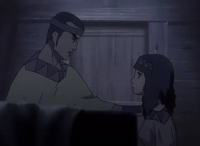 Fuu, Jin, and Mugen are lost in the woods but luckily manage to find their way out and to the ocean, much to Fuu’s excitement. While she plays around in the shore, Mugen catches sight of a girl who unexpectedly recognizes him by name and appearance, running to him and being overjoyed that he’s “still alive”.